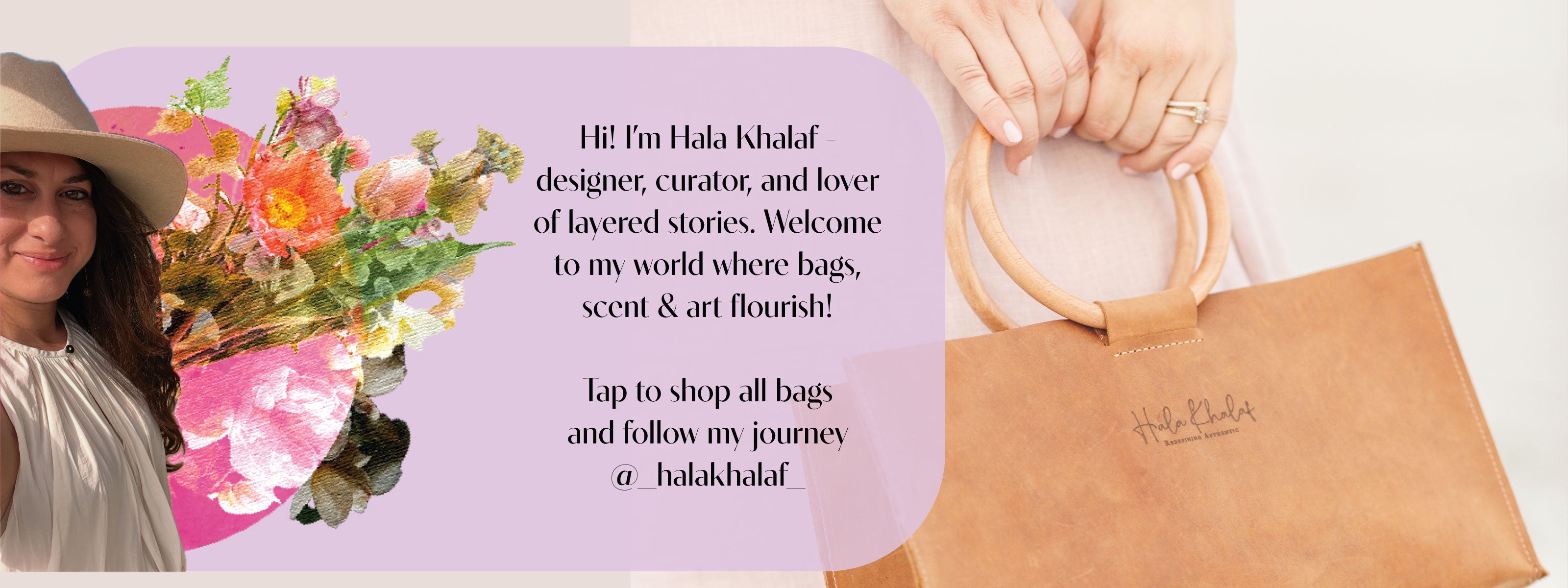 "Hala puts so much attention to detail into each and every one of her bags that you will feel like you’re carrying a work of art with you all day!"